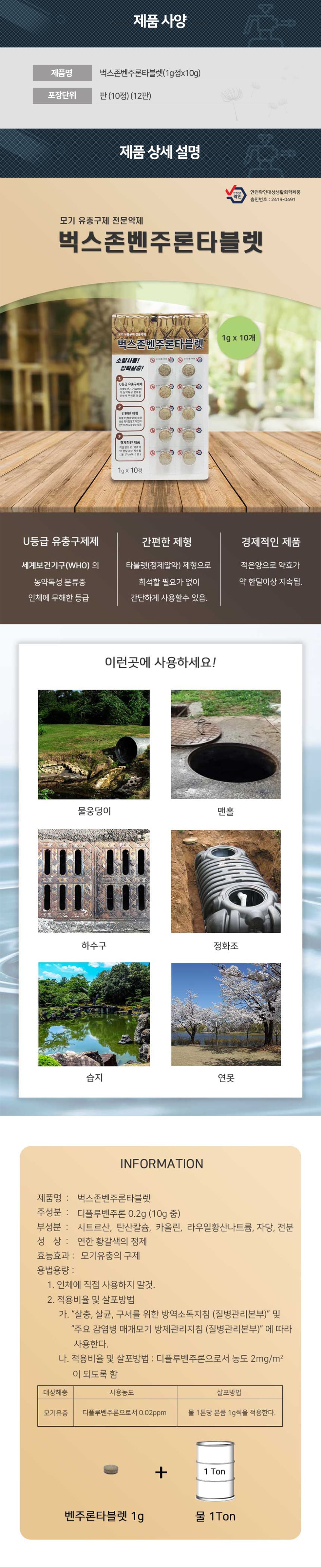 벅스존 벤주론 타블렛 10g (10알) (박스120판 구매시) 10%할인 1알당1톤 > 방역약품