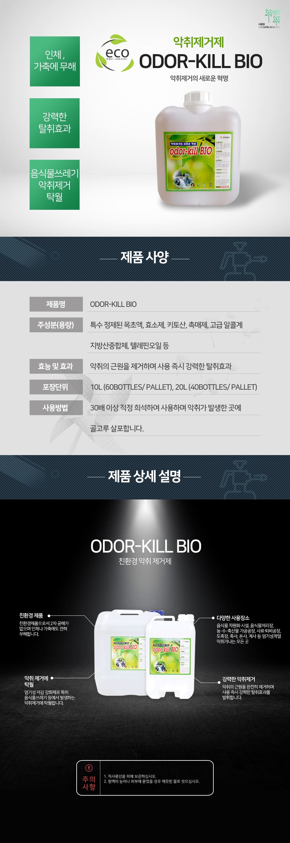 음식물전용 친환경 탈취제 오더킬바이오 20L (10말통 구매시) 10%할인 요약정보 및 구매