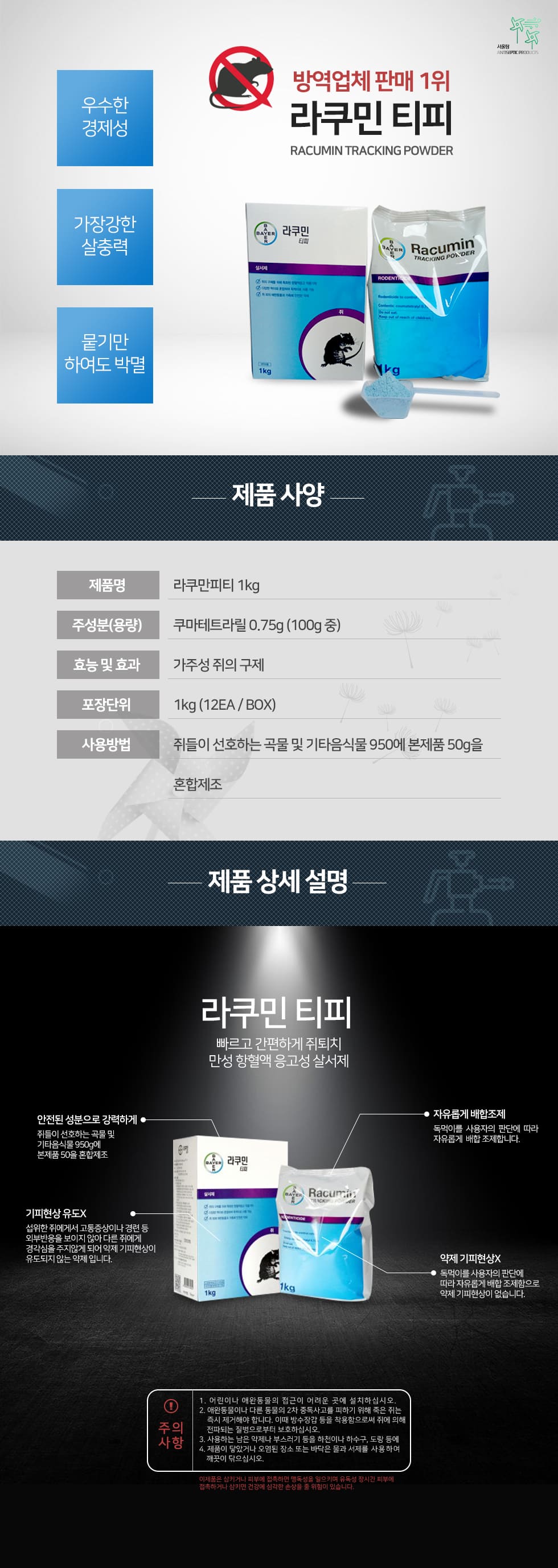 바이엘 라쿠민 티피 1kg 가루쥐약 요약정보 및 구매