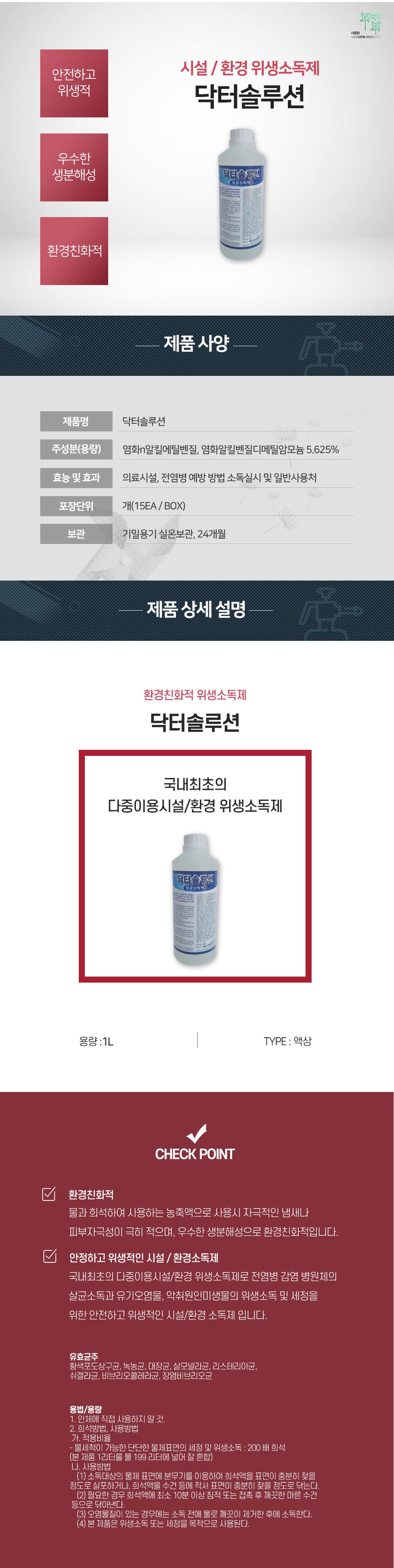 • 한성바이오켐 닥터솔루션 1L (박스 15개 구매시) 10%할안 코로나용 살균소독액